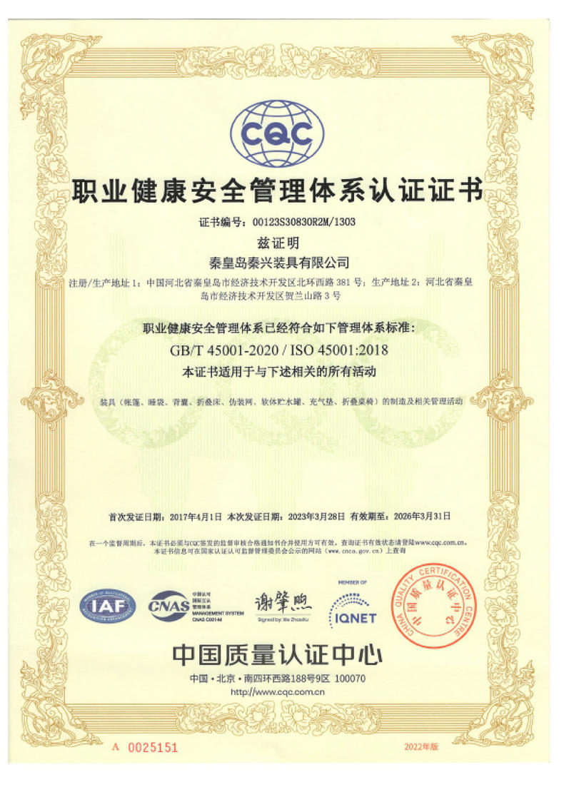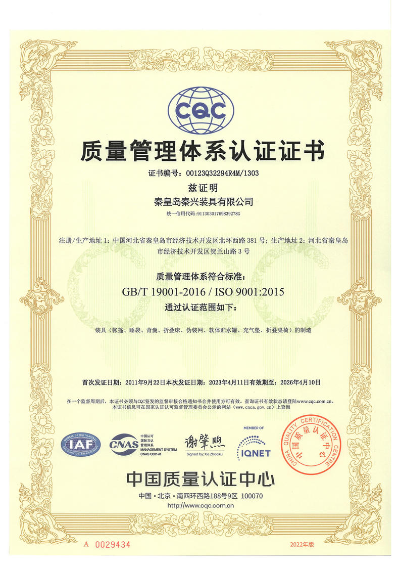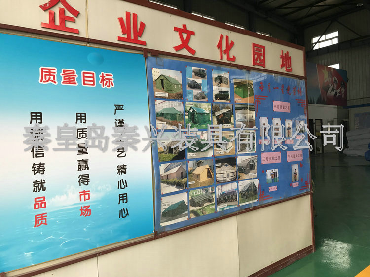 秦皇島秦興裝具有限公司有限公司源于我國第3524工廠,創(chuàng)建于2005年,占地面積30畝,是一家致力于研究,發(fā)展,制造和銷售為一體的綜合性裝具及紡織服裝加工生產企業(yè),我們的主要產品有單、棉帳篷,民用帳篷,旅游帳篷集各種機工產品等。